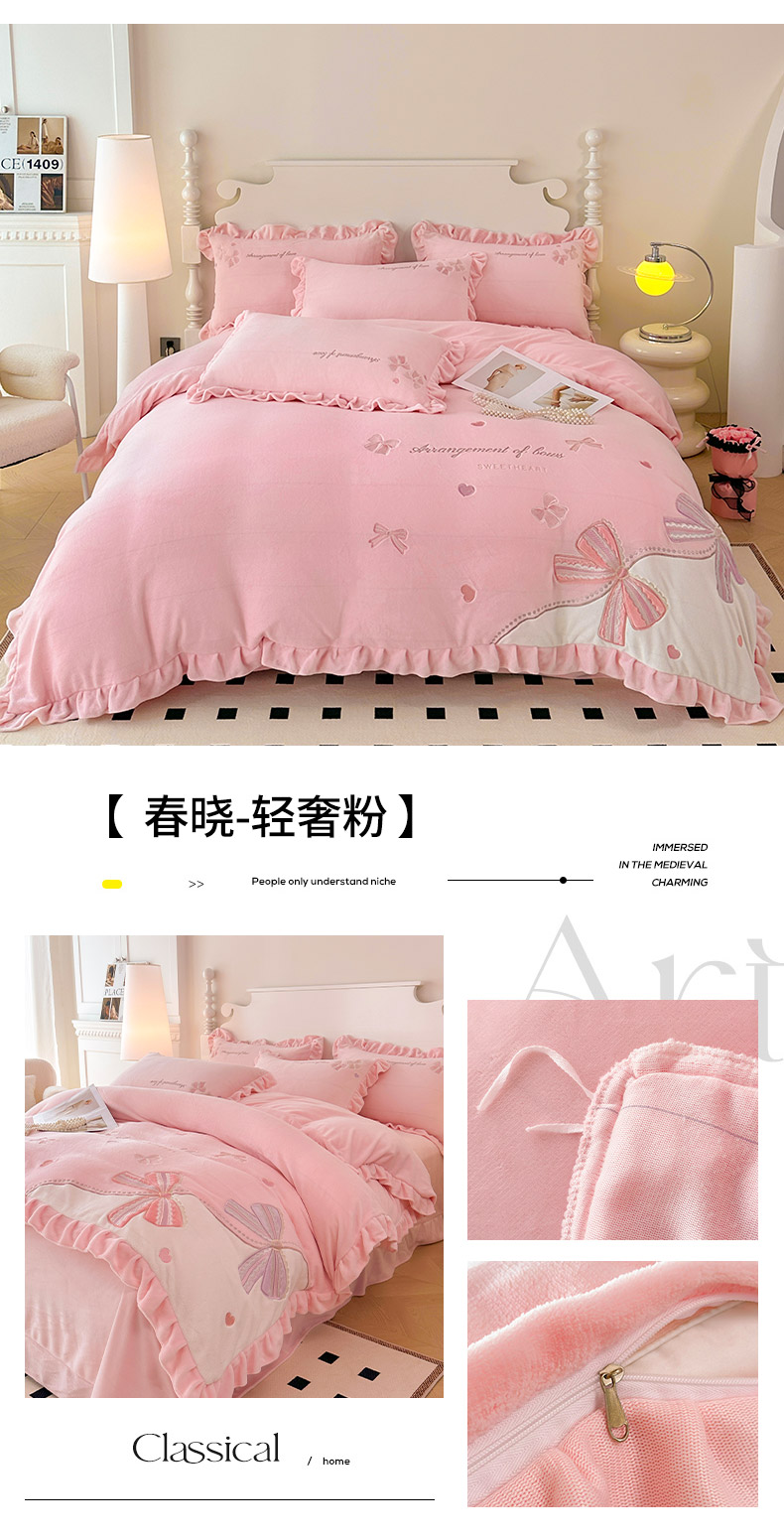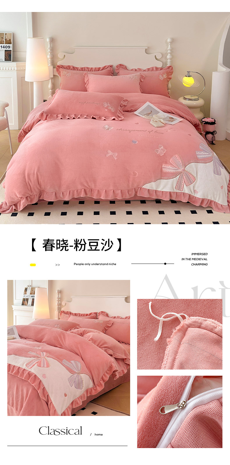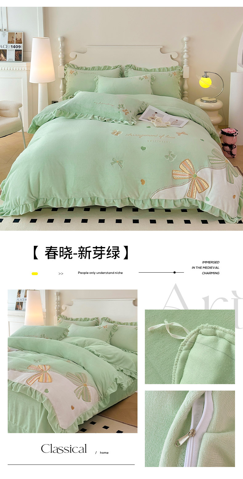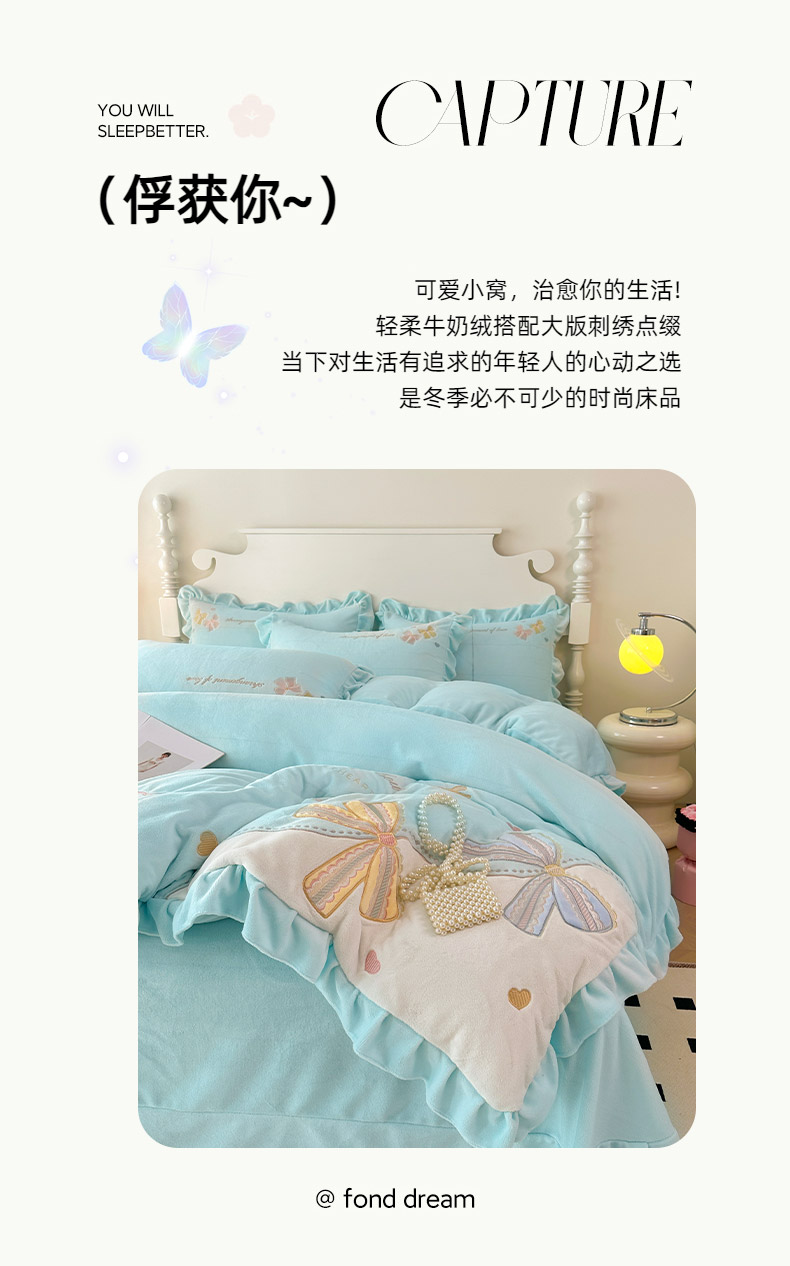 - - 2025新款A类高克重全消光韩版牛奶绒刺绣四件套-梦境