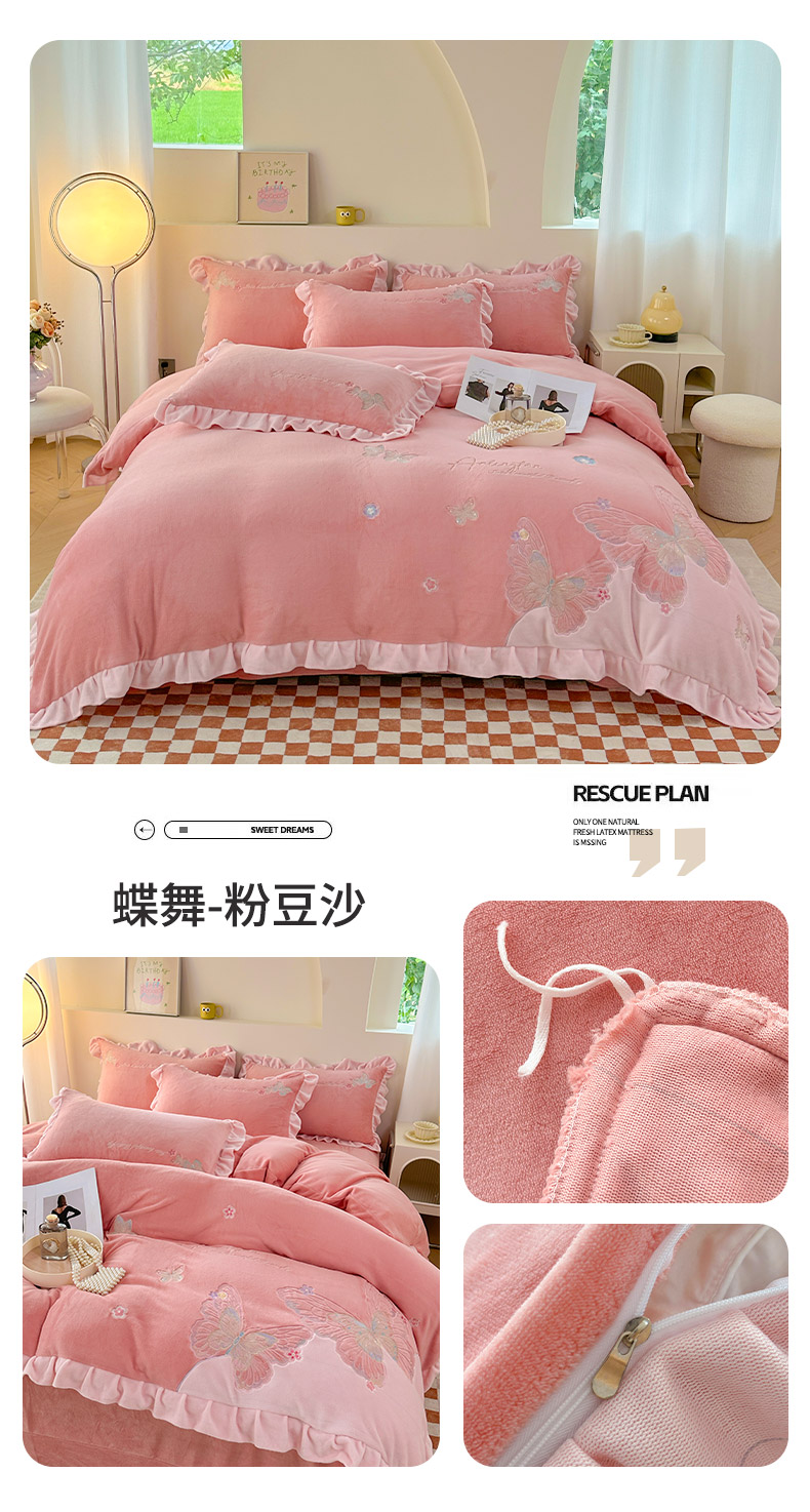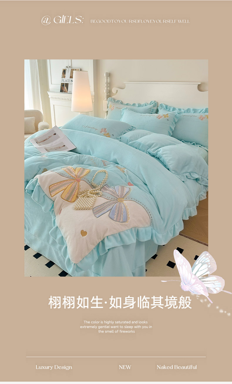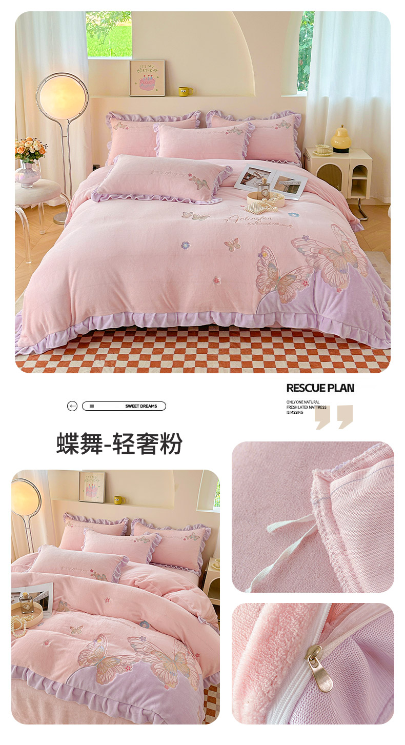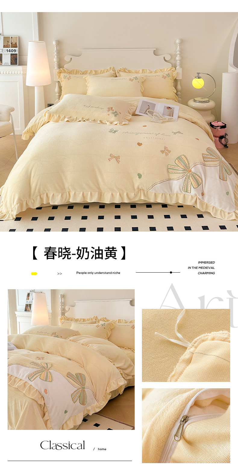 - - 2025新款A类高克重全消光韩版牛奶绒刺绣四件套-梦境