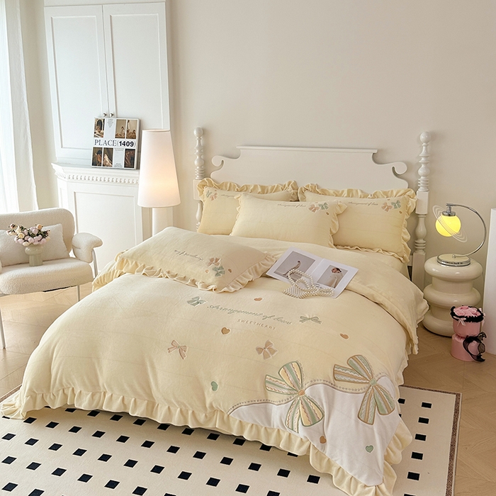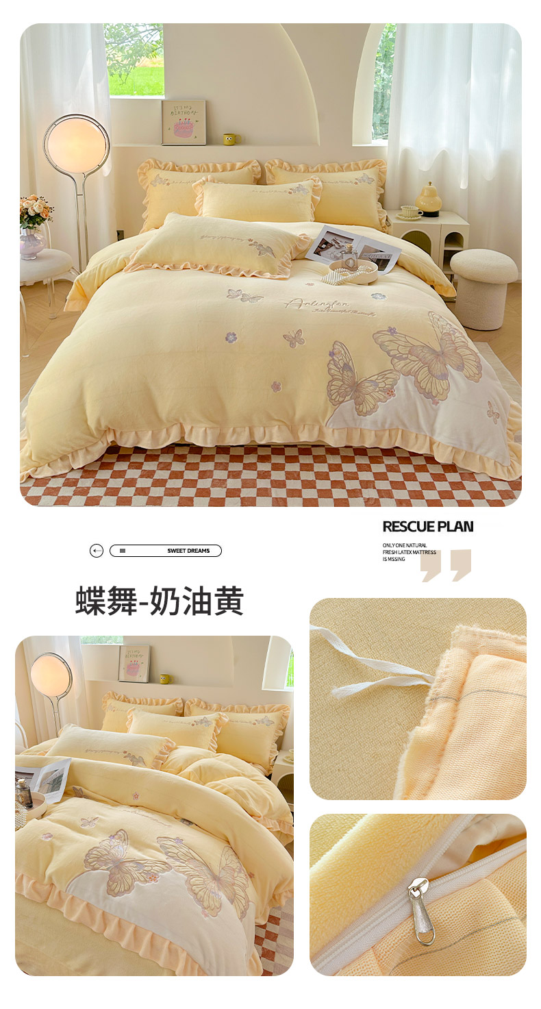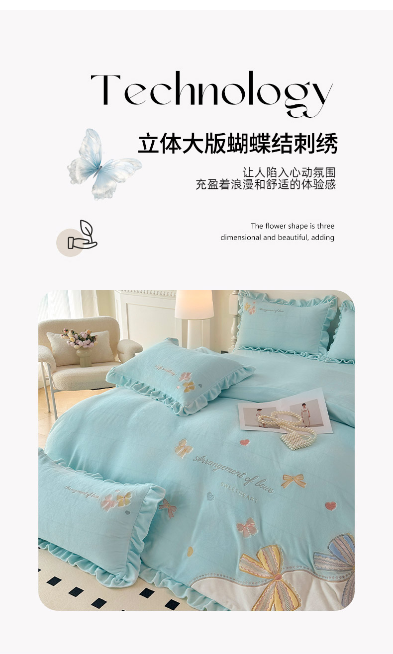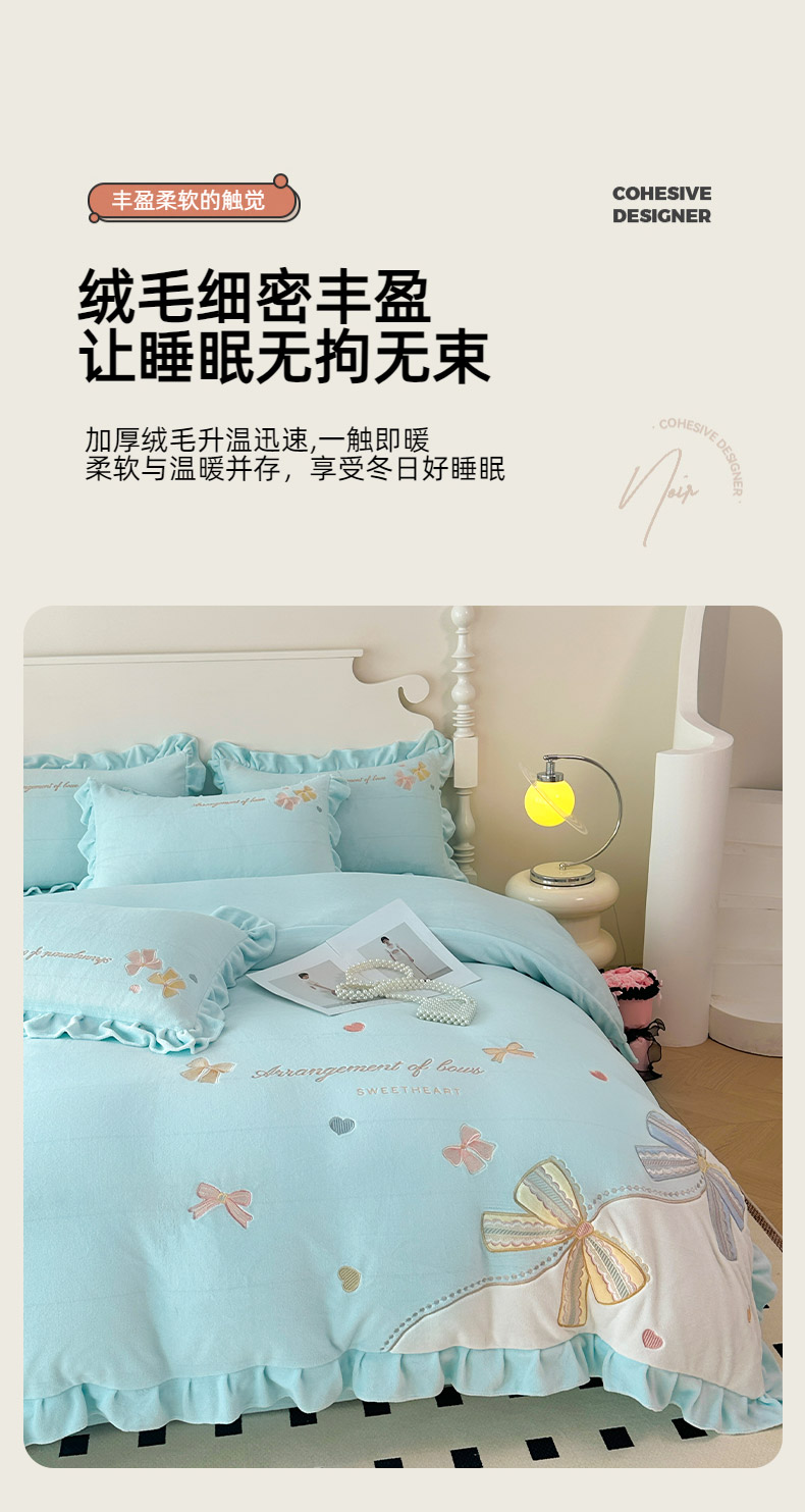 - - 2025新款A类高克重全消光韩版牛奶绒刺绣四件套-梦境