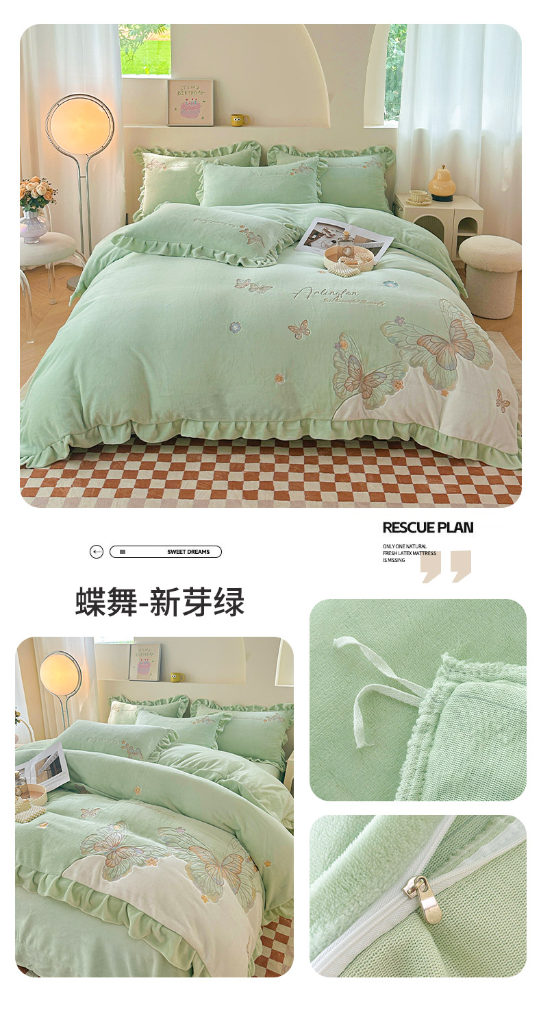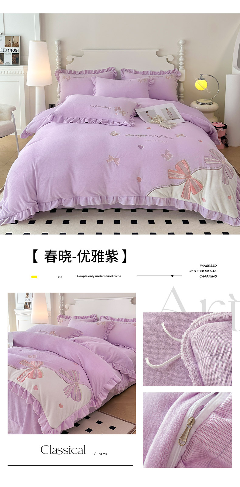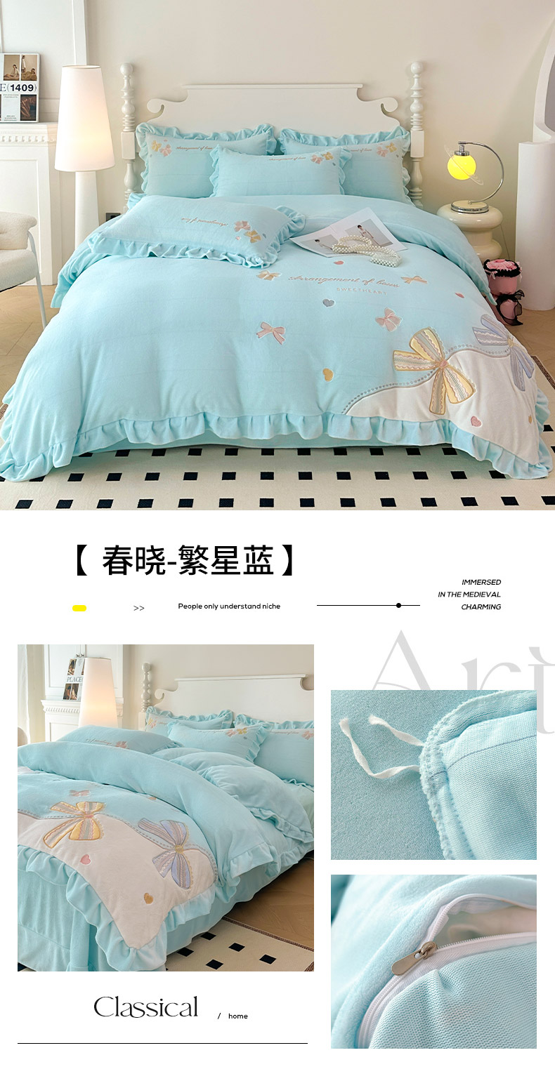 - - 2025新款A类高克重全消光韩版牛奶绒刺绣四件套-千姿