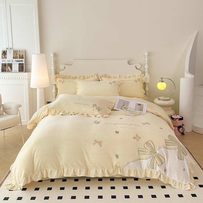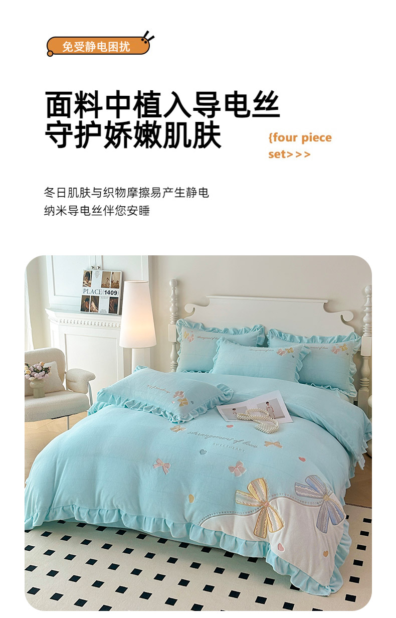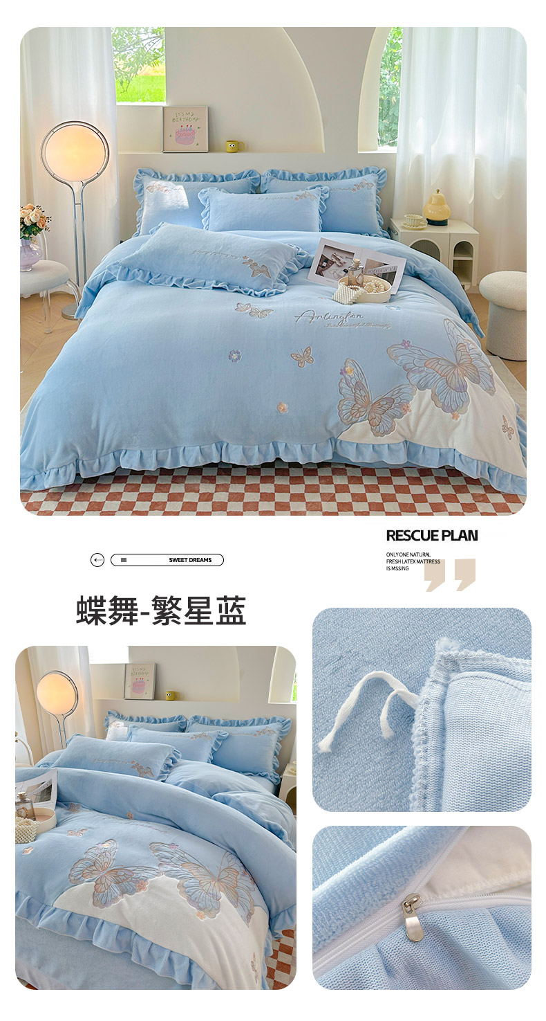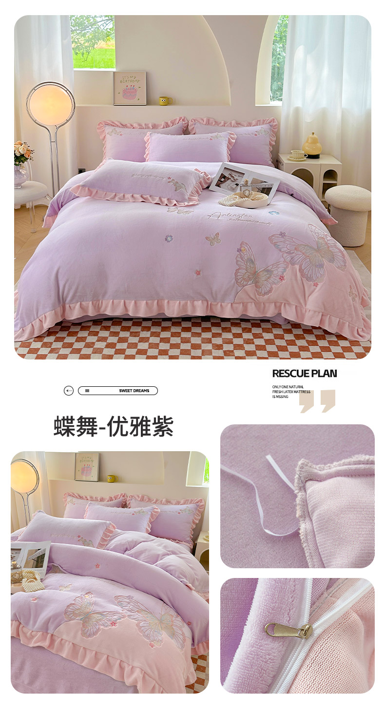 - - 2025新款A类高克重全消光韩版牛奶绒刺绣四件套-千姿