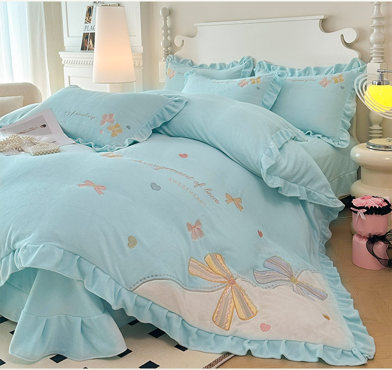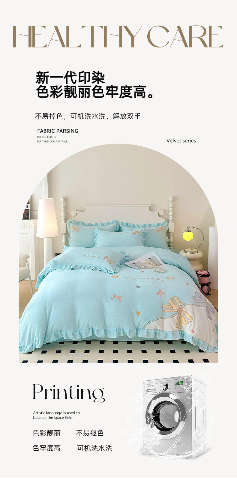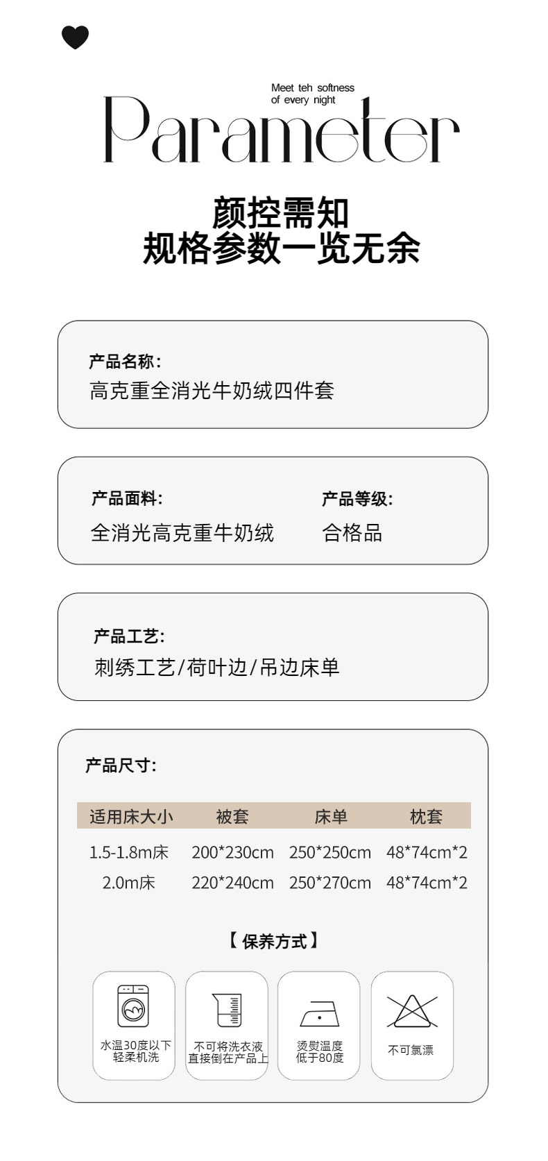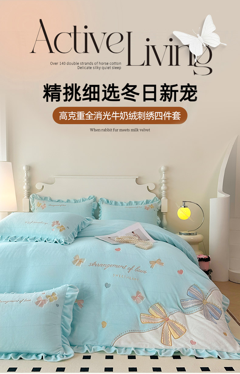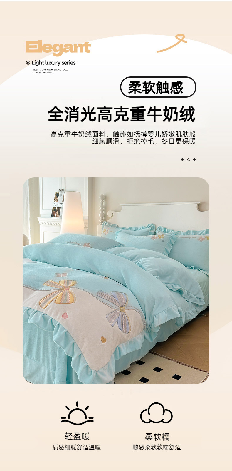 - - 2025新款A类高克重全消光韩版牛奶绒刺绣四件套