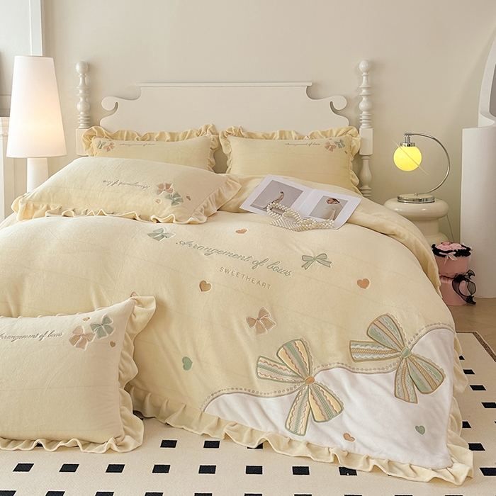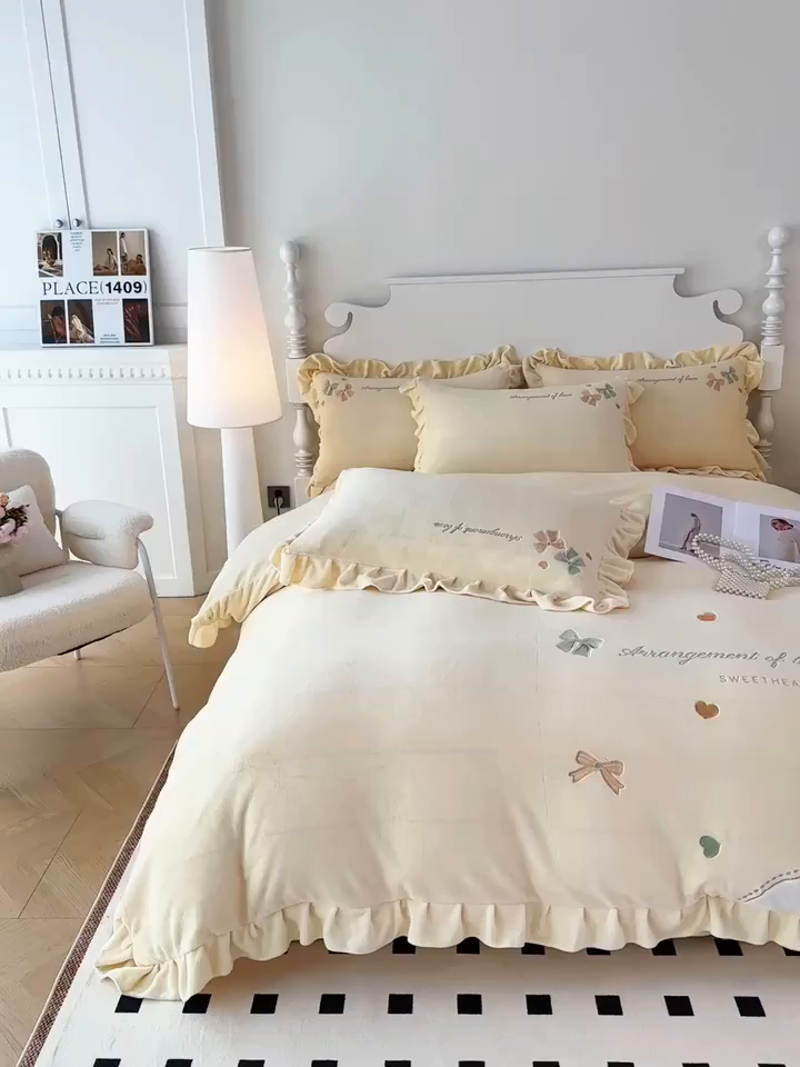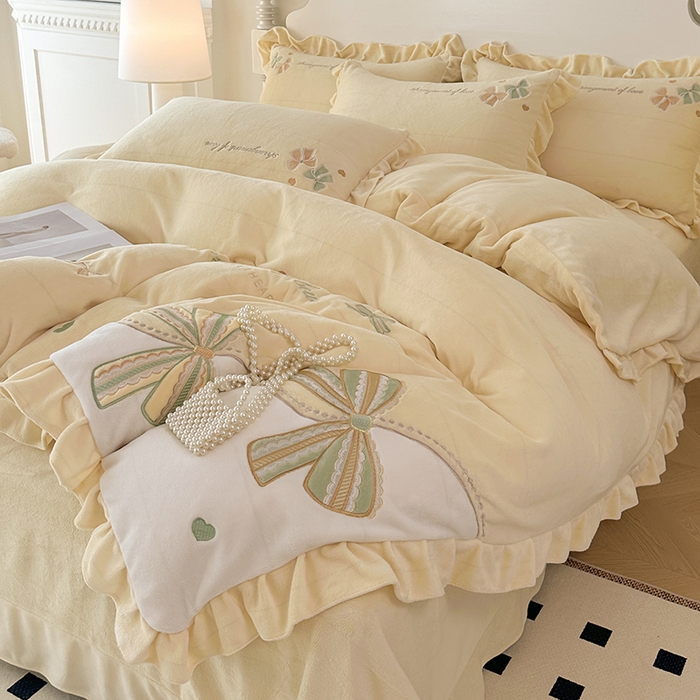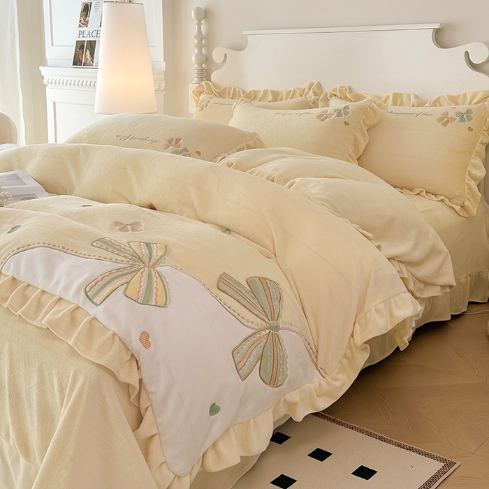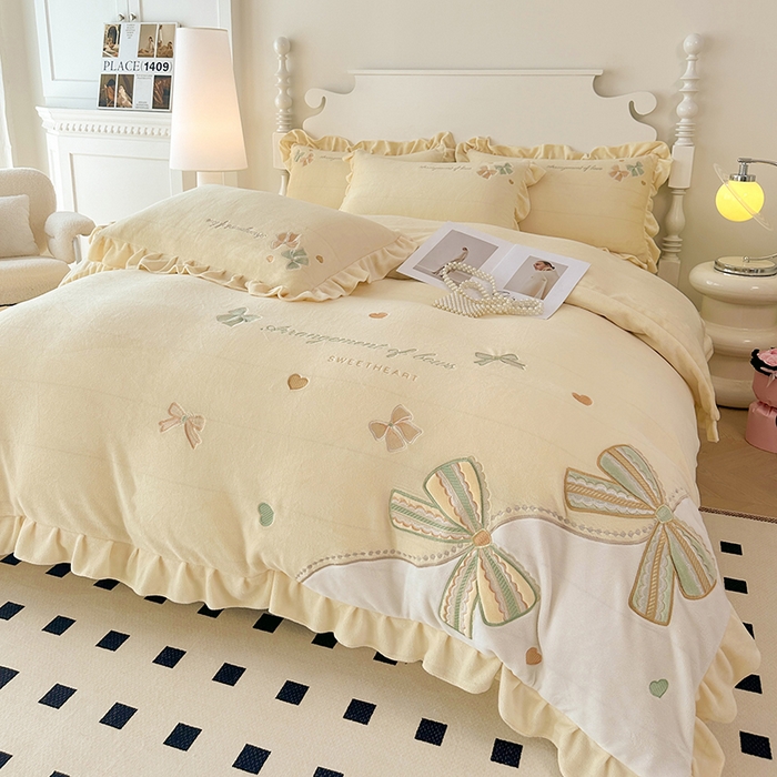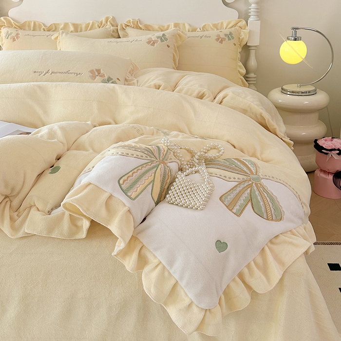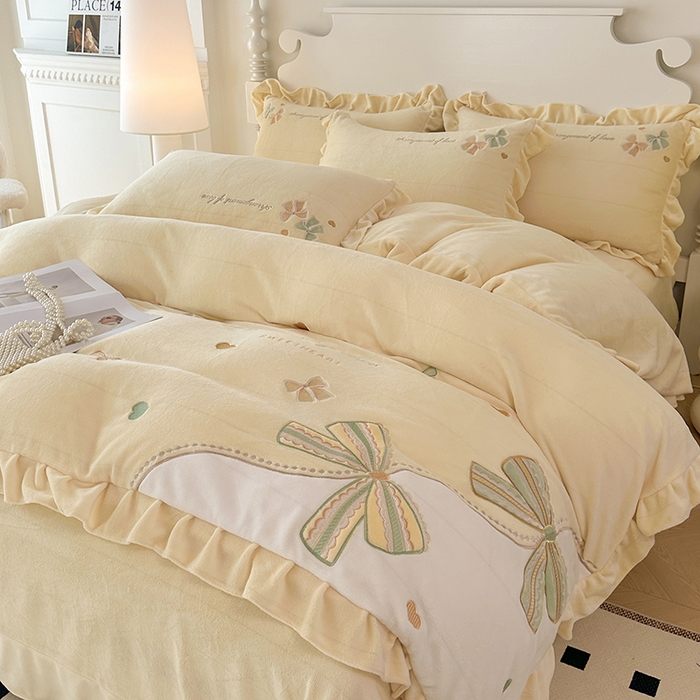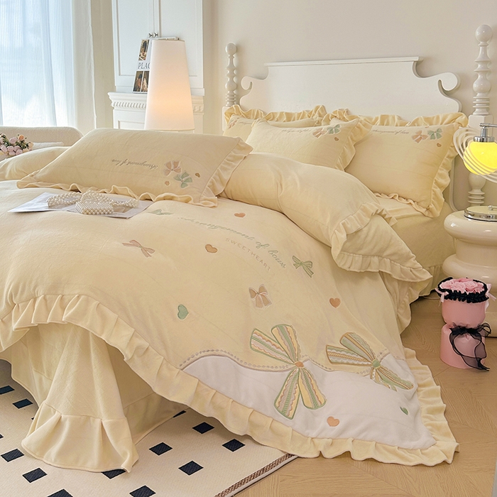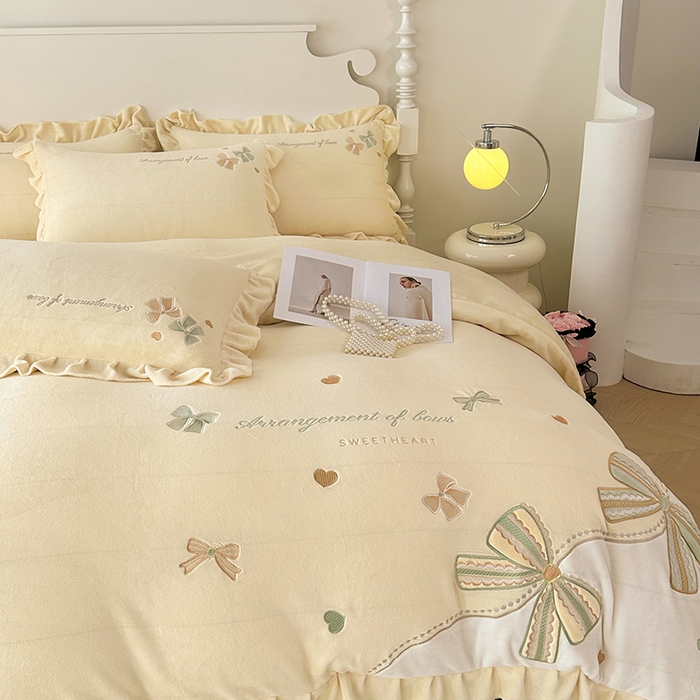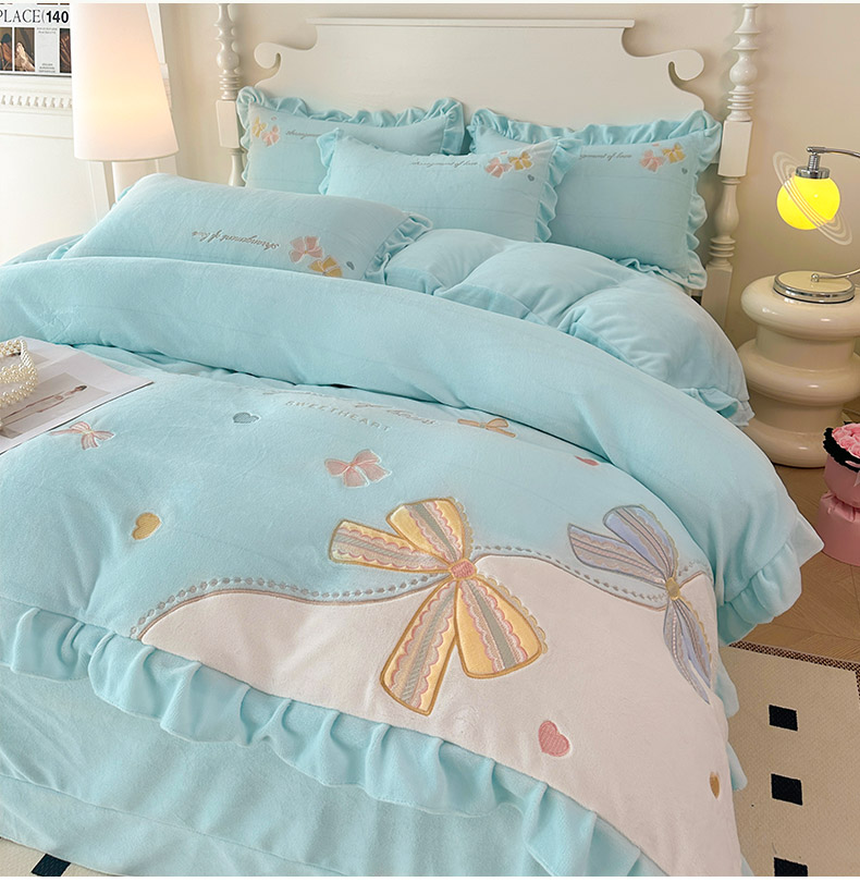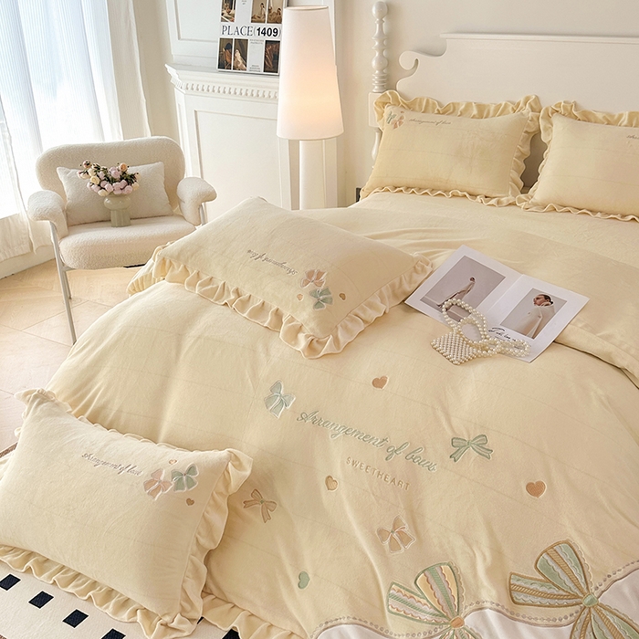 - - 2025新款A类高克重全消光韩版牛奶绒刺绣四件套