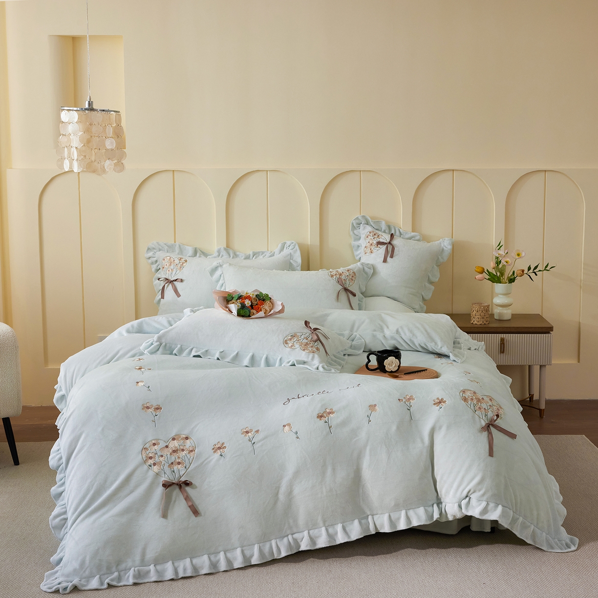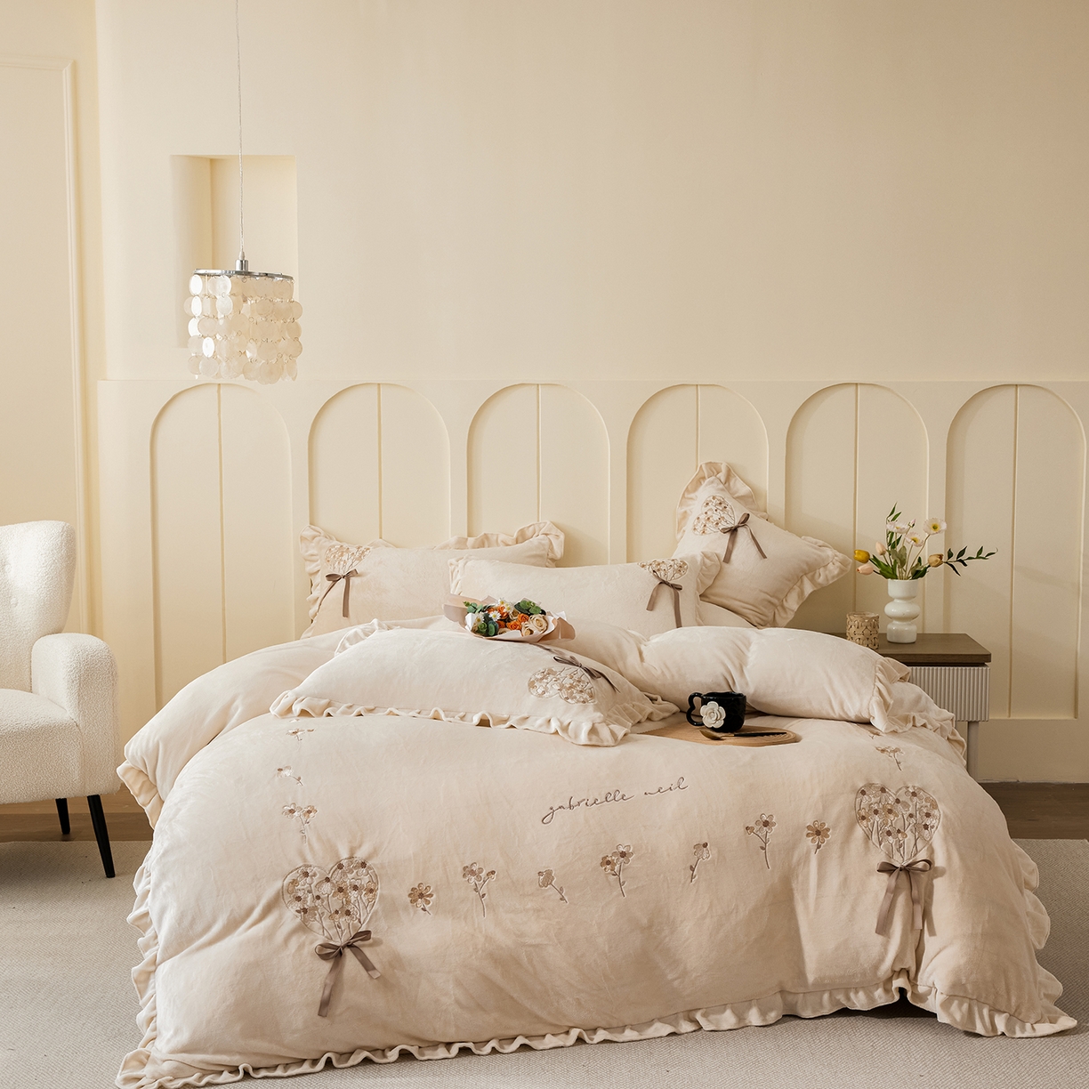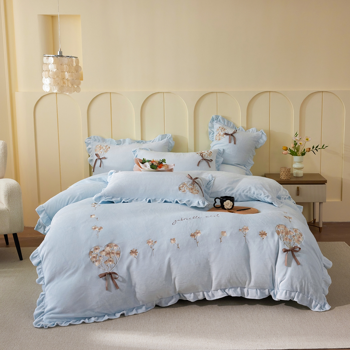 当前位置: 合欢(原天一阁)> 产品中心 > 2025新款A类高克重全消光韩版牛奶绒刺绣四件套-千姿